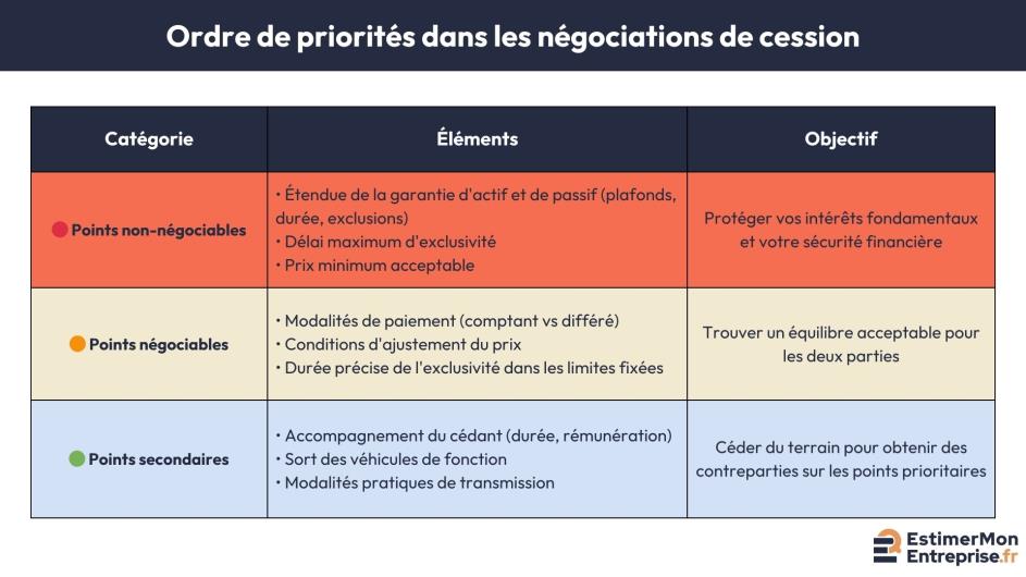 Le prix n'est qu'un élément parmi d'autres dans une cession réussie. Définissez en amont vos critères prioritaires pour évaluer objectivement les offres reçues.